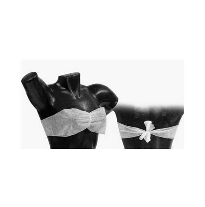 Jednorazowy biustonosz damski - wiązany, wykonane z wysokiej jakości miękkiej, przewiewnej włókniny, zapewniają wysoki komfort noszenia. Stosowany w kosmetyce profesjonalnej takiej jak np. opalanie natryskowe ciała, medycynie.