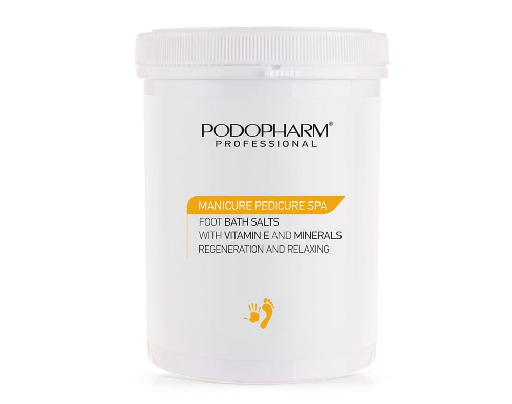 Podopharm Nawilżająca sól do kąpieli dłoni i stóp, do stosowania przed zabiegiem manicure i pedicure kosmetycznym.
