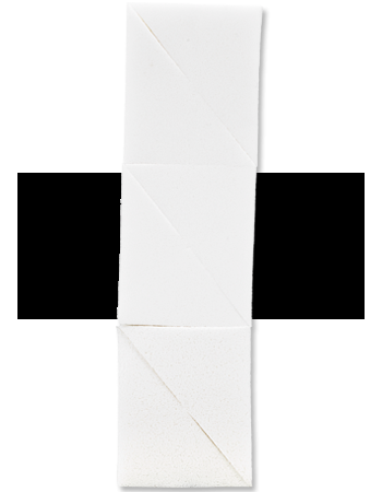 Drobnoporowata, niezawierająca lateksu trójkątna gąbka do precyzyjnego i równomiernego nakładania kremowych podkładów. Sześć trójkątnych gąbek w celofanowym opakowaniu.