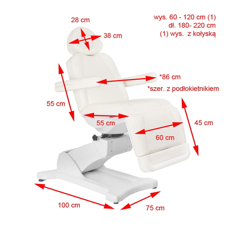 FOTEL KOSMETYCZNY ELEKTR. AZZURRO 869A OBROTOWY 4 SILN. BIAŁY