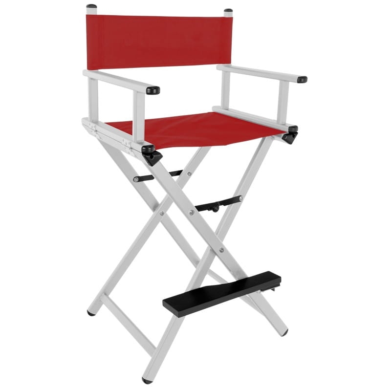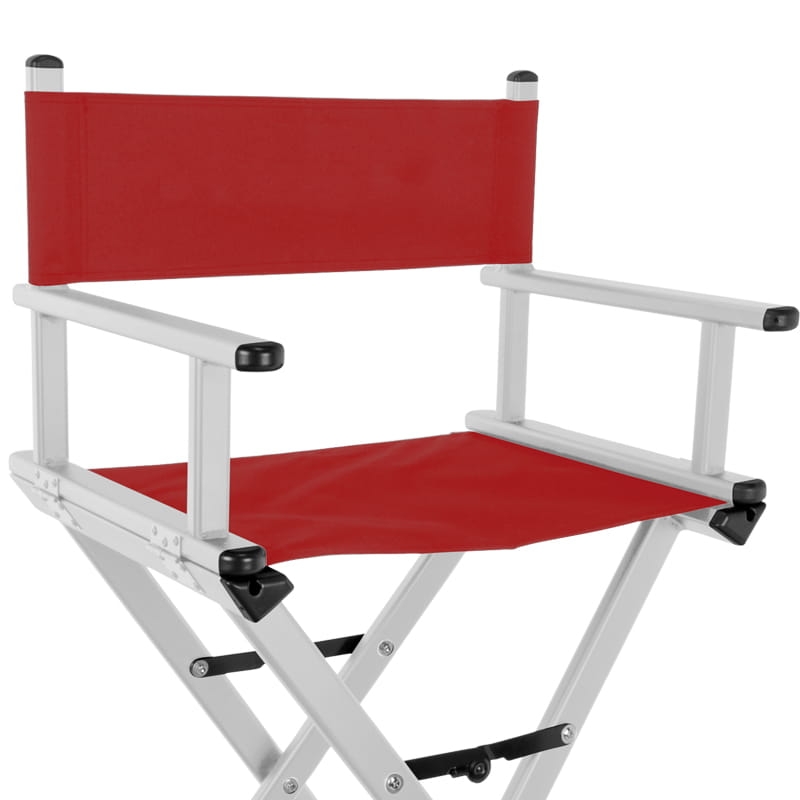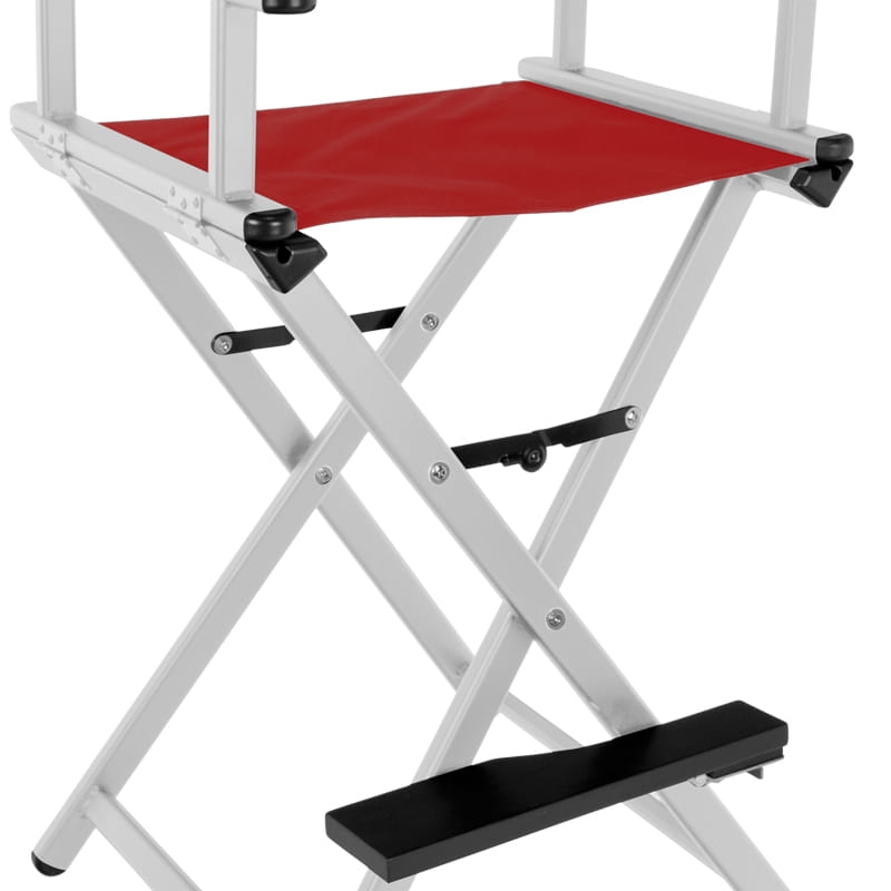 KRZESŁO DO MAKIJAŻU GLAMOUR ALUMINIOWE SREBRNE Z CZERWONYM MATERIAŁEM