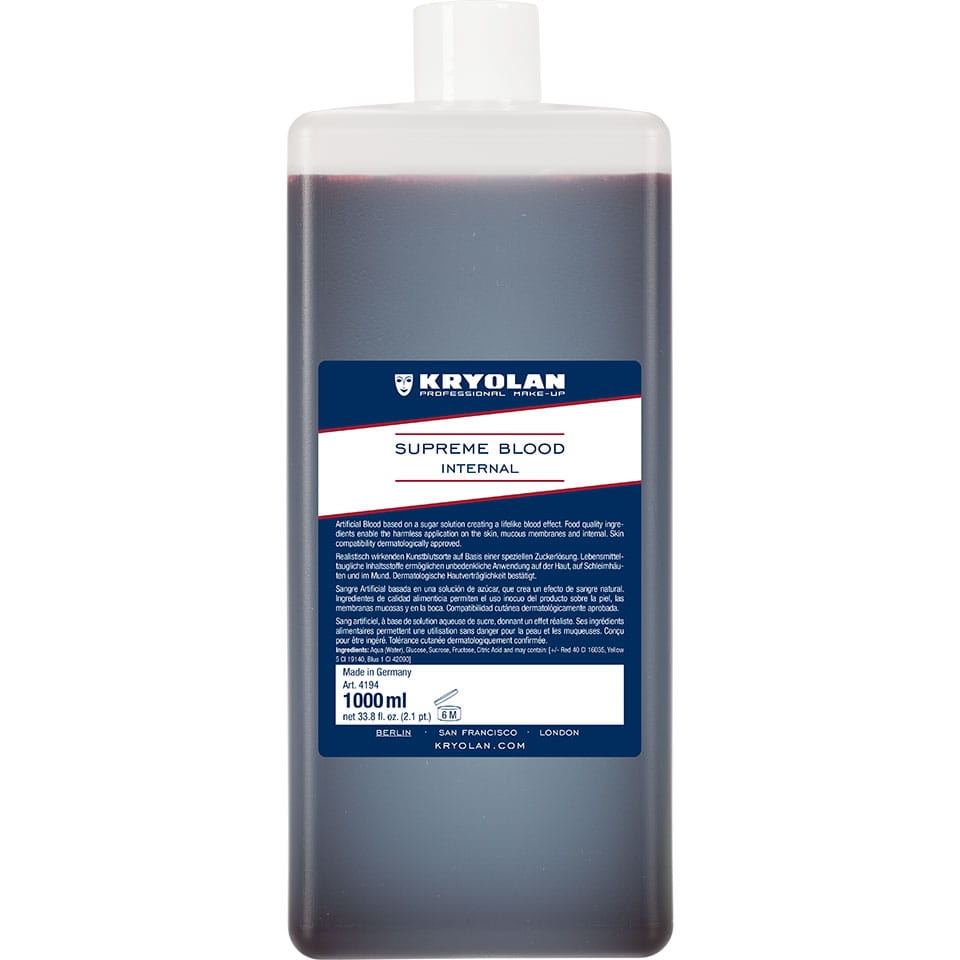 Supreme Blood posiada typową dla prawdziwej krwi lepkość i adekwatną płynność. Jest idealna do wykorzystania w teatrze, filmie, telewizji oraz w innych projektach z efektami specjalnymi. Ta krew nadaje się do zastosowania wewnętrznego.