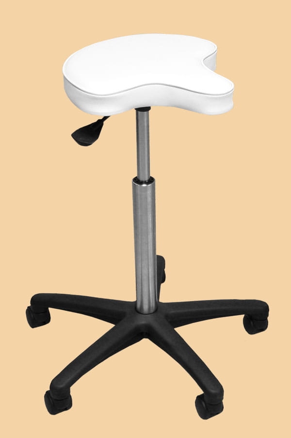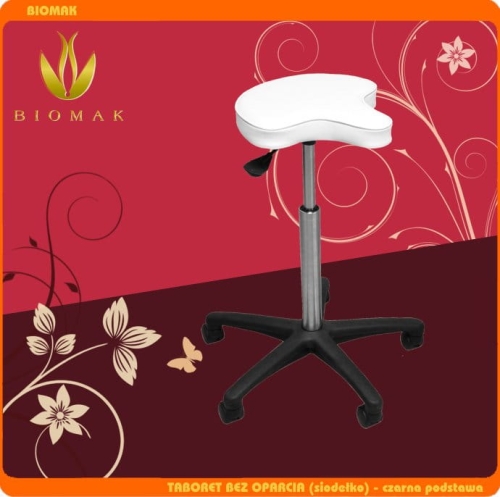 Doskonały dla fryzjerek, manicurzystek i pedicurzystek. Specjalnie wyprofilowane wycięcie poprawia komfort siedzenia. Podstawa taboretu wyposażona jest w kółka, ułatwiające przesuwanie taboretu po podłodze. Taboret dostępny jest w dwóch wersjach: o podstawie czarnej lub chromowanej.