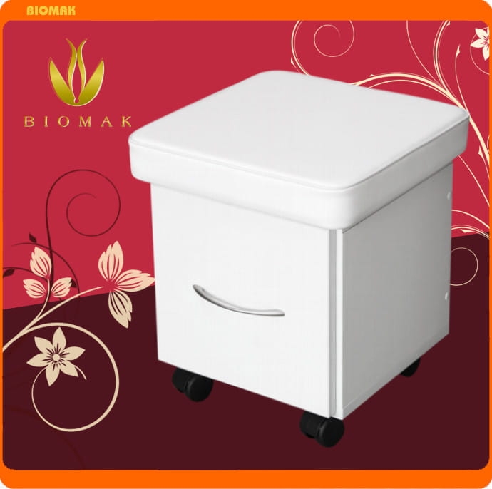 Taboret przeznaczony jest do pedicure. Wyposażony jest w szufladę w której można przechowywać podręczne akcesoria.