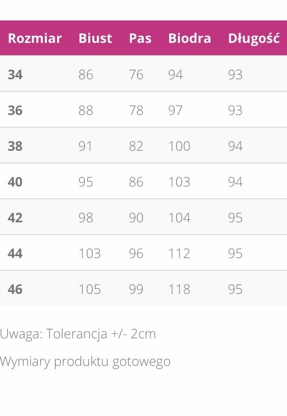 Modelka na zdjęciu ma 180 cm wzrostu i ubrana jest w rozmiar 36.