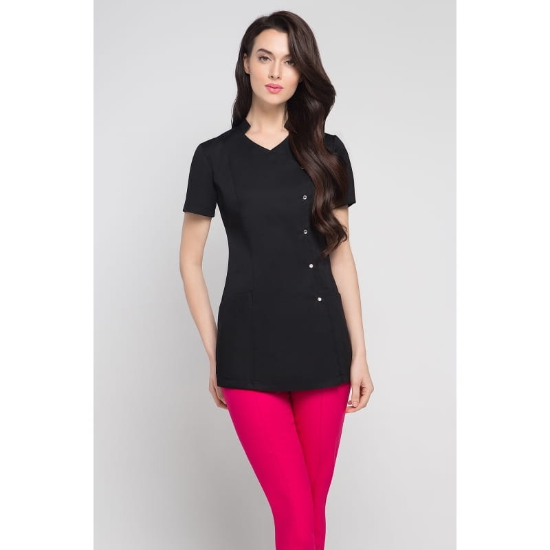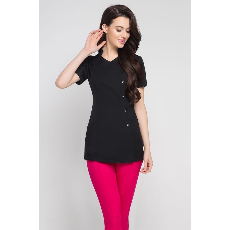 Czarna tunika Isabel zapinana na napy cyrkonie to klasyk w kolekcji fartuszków medycznych i kosmetycznych marki Vena!
