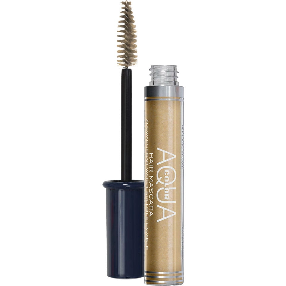 Aquacolor Hair Mascara to wodna maskara do włosów w buteleczce z aplikatorem, przeznaczona do tworzenia różnorodnych efektów na włosach.