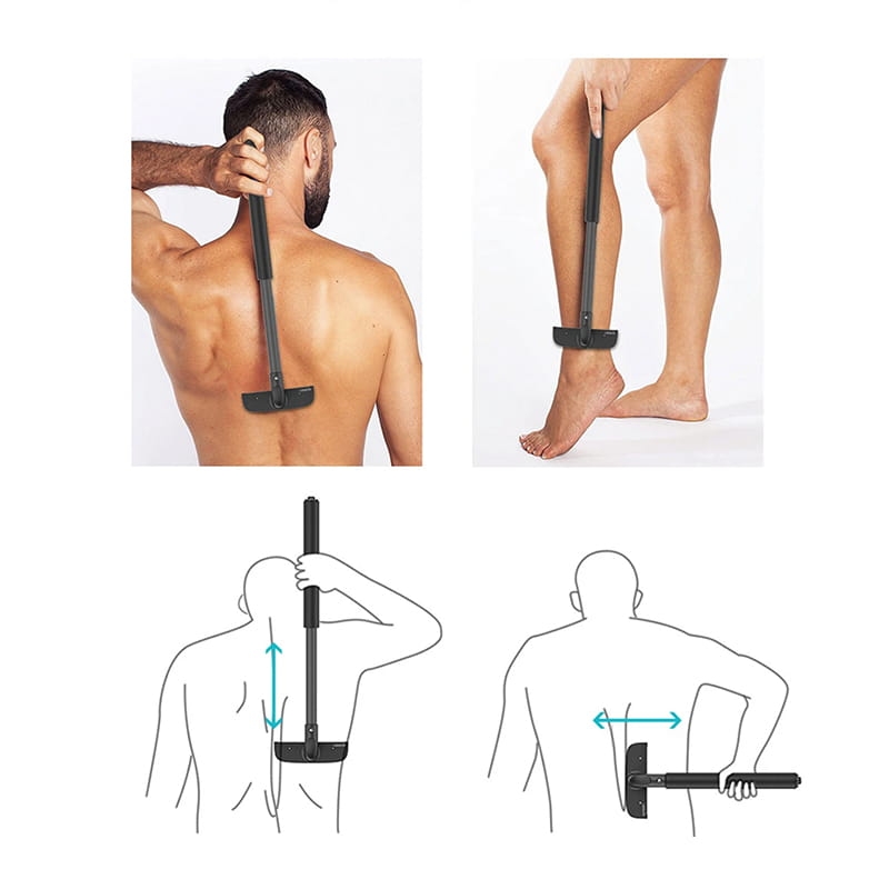 3. Delikatnie zamknij dolną część głowicy tnącej do pleców a następnie powoli pociągnij głowicę w górę i w dół, aby usunąć włosy z tyłu. (Nie naciskaj mocno głowicy tnącej, aby uniknąć obrażeń)