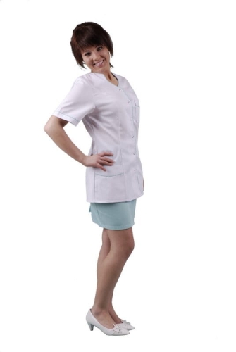 - Żakiet może być jednobarwny lub wykończony lamówką na kieszeniach, rękawach, wzdłuż przodu i dekoltu.